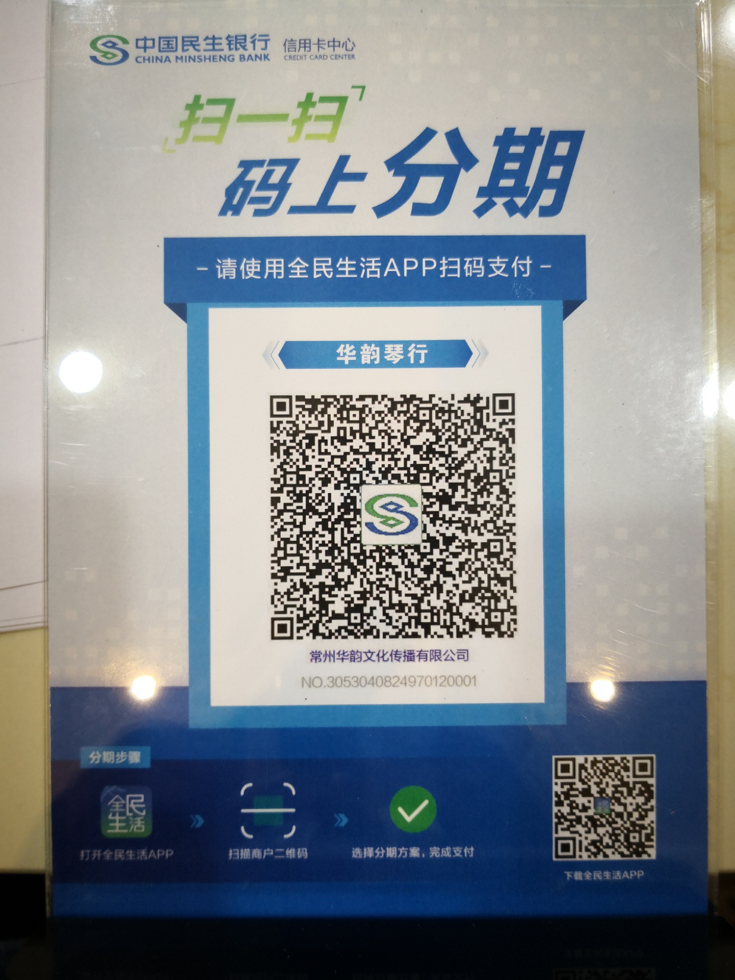 无锡华韵琴行与中国民生银行2018年11月6日起正式授信合作购买钢琴分期付款业务!